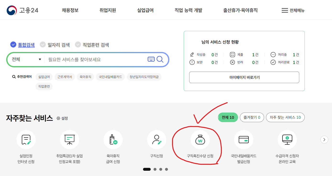 국민 취업지원제도 구직촉진수당 온라인 신청 방법: